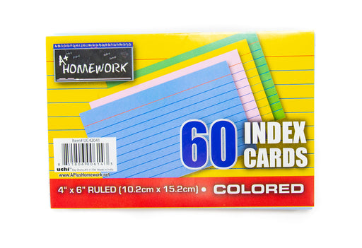 60 COLORED RULED INDEX CARDS SIZE 4" x 6" WIDE RULED 4 COLORS FOR USE AT HOME, OFFICE OR SCHOOL FOR ORGANIZE NOTE-TAKING MAKE OF QUALITY PAPER. 60 ...