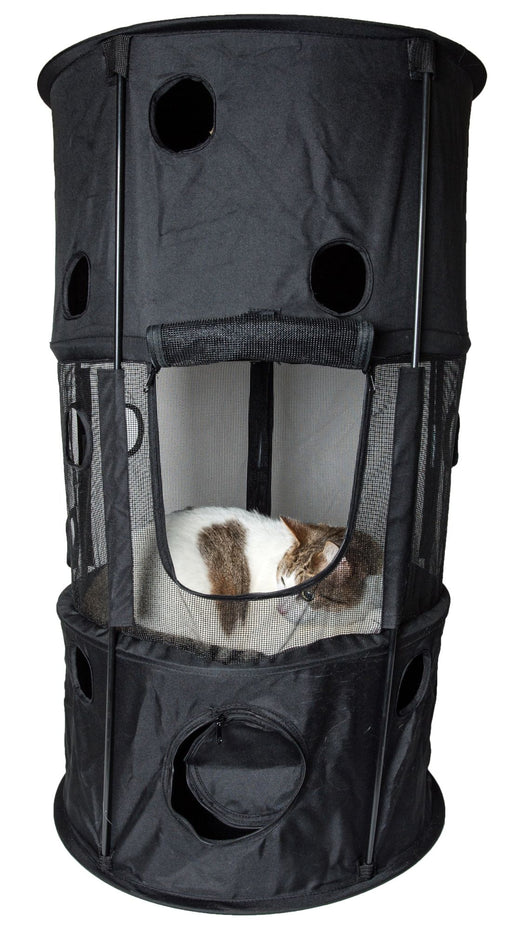 Highlights Finally a Cat House that folds and collapses and installs in minutes Features Multiple Zippered Entrances and peak holes and levels for ...